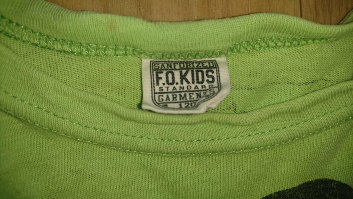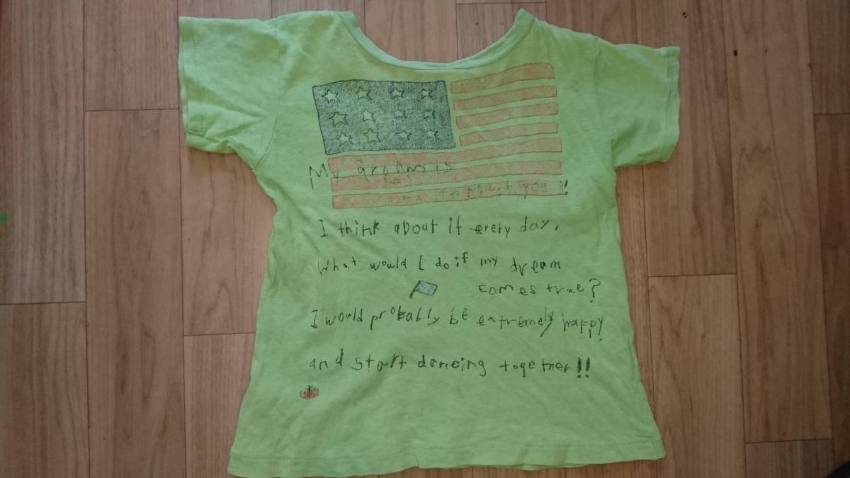 色はグリーンで、前後にプリントが入っています。