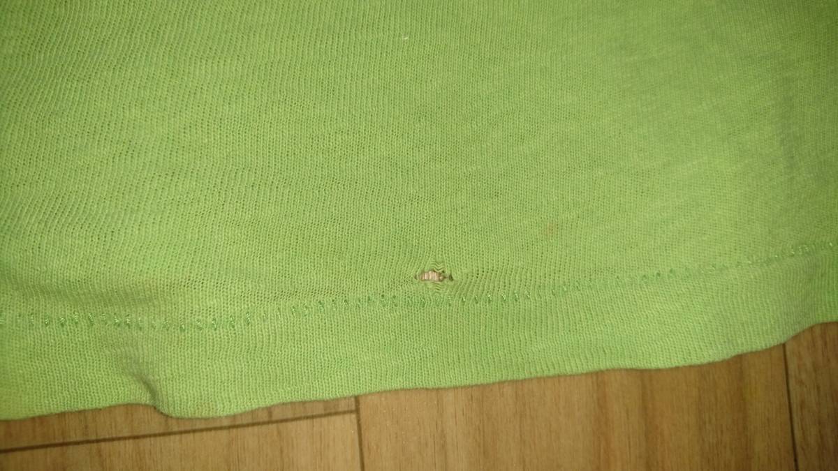 元々襟ぐりが広めのデザインですが、着用で緩くなってます、裾に画像のとおり小さな穴があいています。