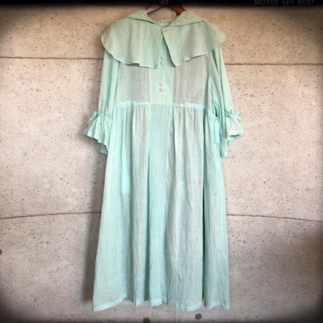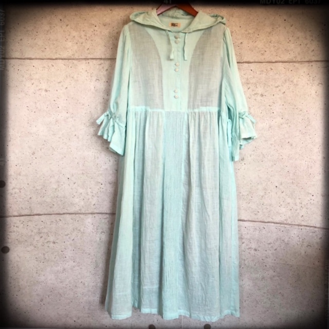 ご覧いただきありがとうございます。 ・林間を吹き抜ける風のように心地よい肌触りの綿麻ワンピース ・ミントブルー色 ・フ-ド&ケ-プ付き(ケ-プは取り外し可)アンダー付き ・ポエムの中に出てきそうなレトロチックバージョンです サイズおおよそ 総丈 108cm 袖丈 40cm バスト108cm ウエスト112cm ヒップ フリー 品質 綿 50% 麻 50% 製品番号 nop 09 生産国 日本 価格 ¥34,870 (本体¥31,700+税)→SALE中 <製品について> この製品は、時代物の生地を使用のためシミ・キズ・色落ちがある場合があります。(一部) 又、生地強度の面で劣化が見られる事があり、 そのため使用中にキズ等が生ずる場合がございます。 これらも、時代を経た古布の特性とご理解頂きましてご了承の上、ご購入頂きますようお願い致します。 | |||