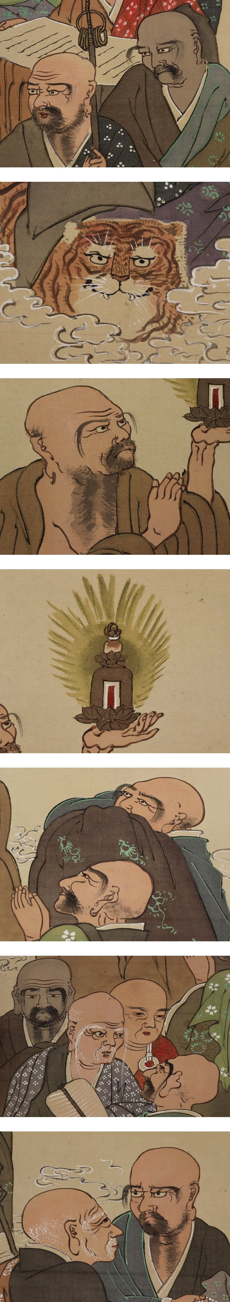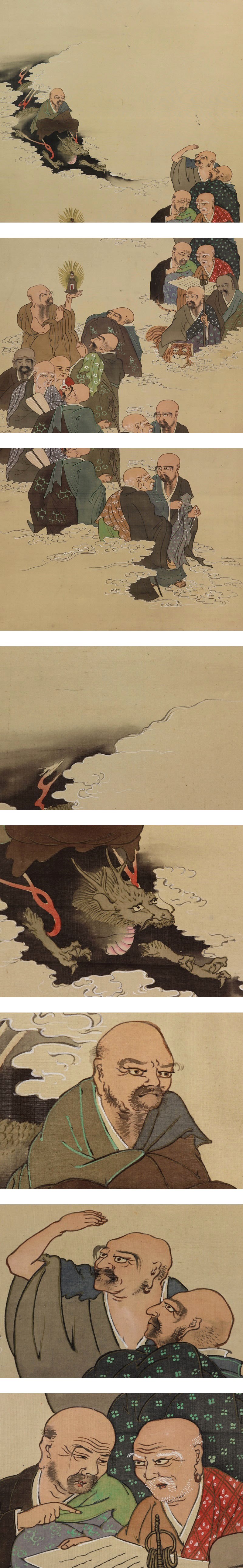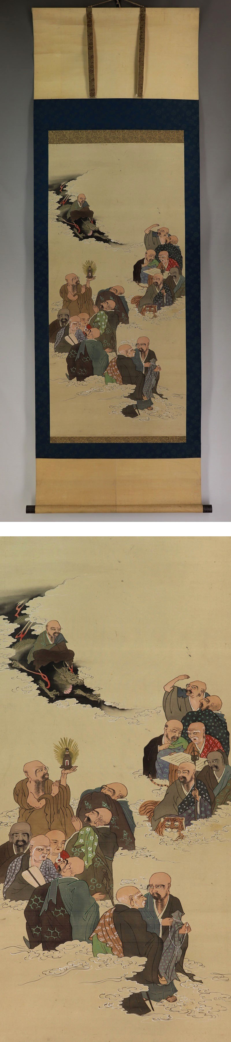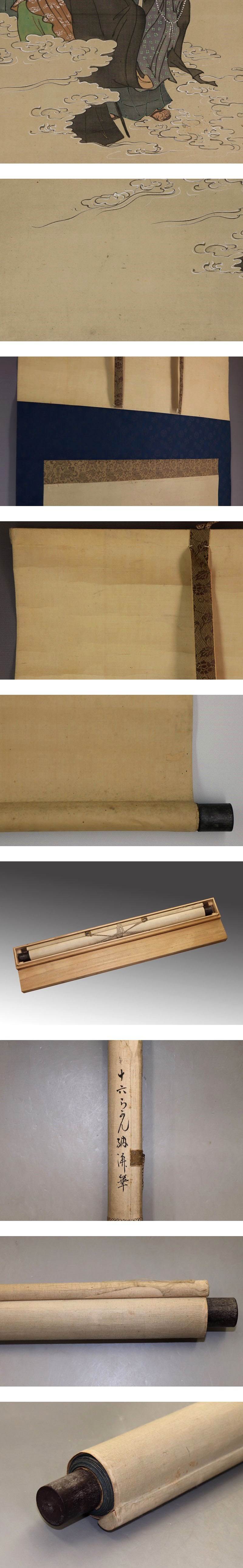 | №2007183【肉筆】仏画【十六羅漢】◆絹本◆合箱◆掛軸 | |