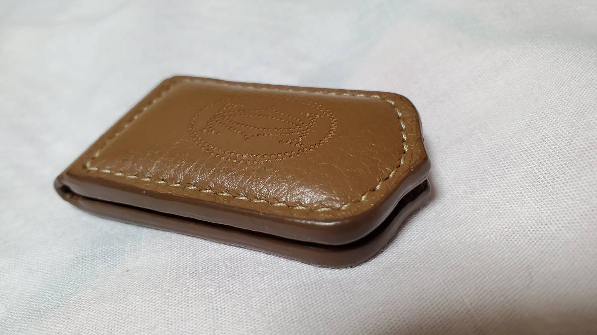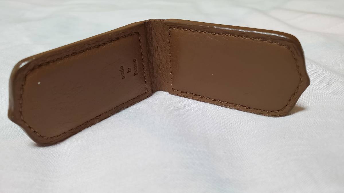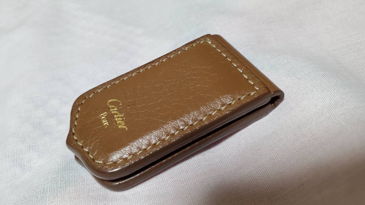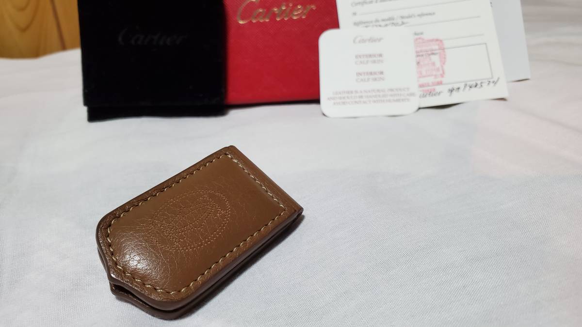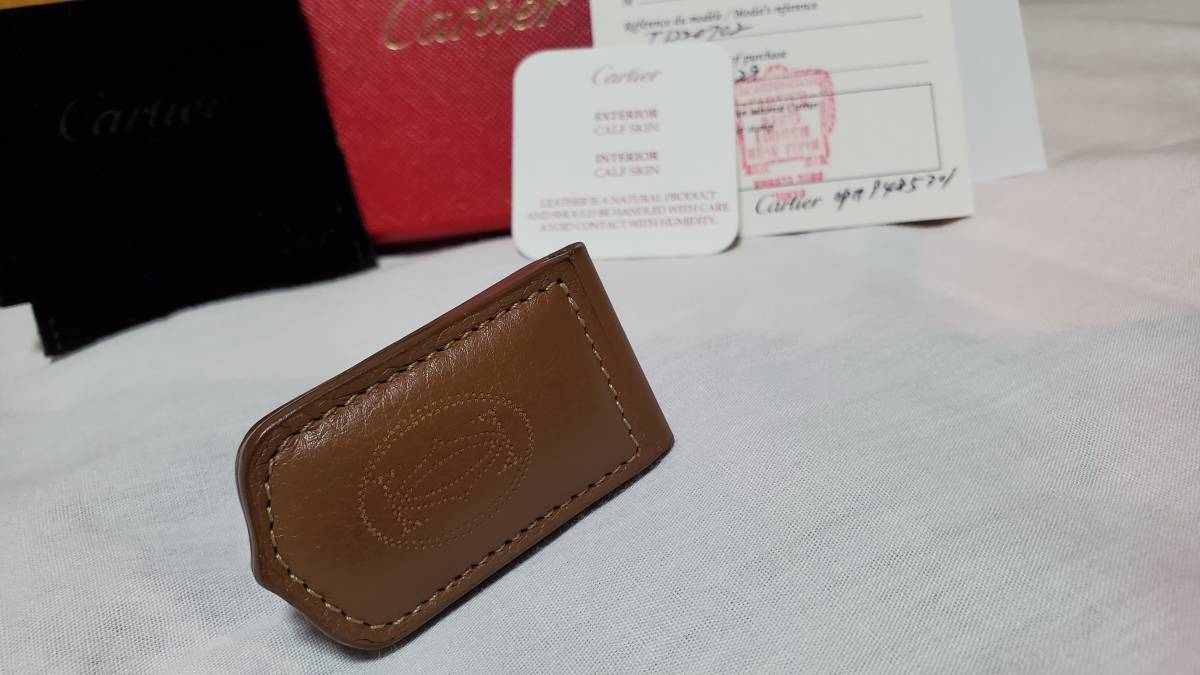 正規 Cartierカルティエ アルディロン 2Cロゴ フルレザーマネークリップ 茶 ラウンドパンチングエンブレム 財布 ペーパーウォレット 付属有