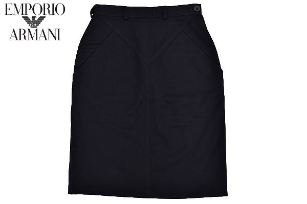 M-1052★送料無料★美品★EMPORIO ARMANI エンポリオアルマーニ★オールシーズン 正規品 イタリア製 ネイビー紺 ひざ丈 タイト スカート 38