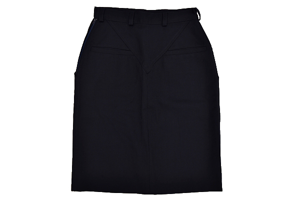 ネイビーカラー レディース 裏地あり 膝丈スカート ウエスト左横ファスナー