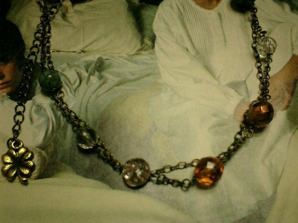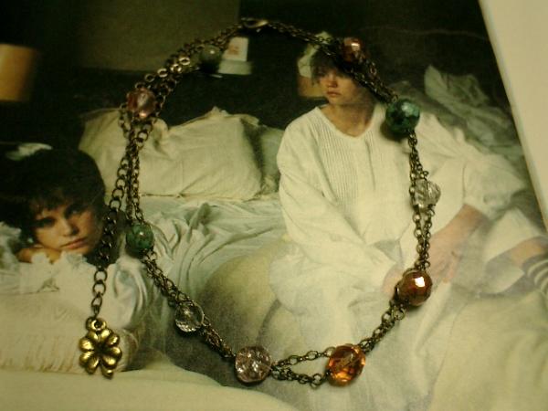 シックなターコイズと神秘的なヴィンテージグラスビーズでネックレスを作りました♪やさしい雰囲気でこれからの季節にぴったりです。ターコイズは12ミリ玉、8ミリ玉でチェコビーズは10ミリ、ヴィンテージグラスビーズは10ミリと8ミリ位、水晶は8ミリカット玉です。シックなお色のチェーンと2連にしました。シンプルで飽きのこないいつまでも着けられるデザインを考えて作りました!ネックレスの長さは37センチ+アジャスター14センチで最長51センチ位です。お揃いのブレスレットも出品しています。ハンドメイドをご理解頂いてノークレーム、ノーリターンでお願いします