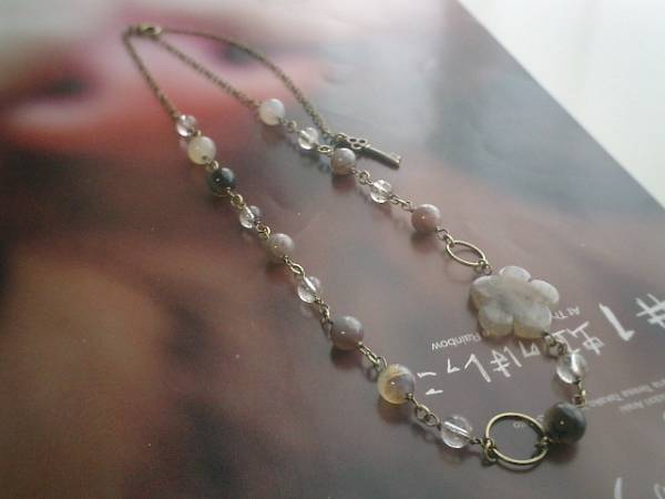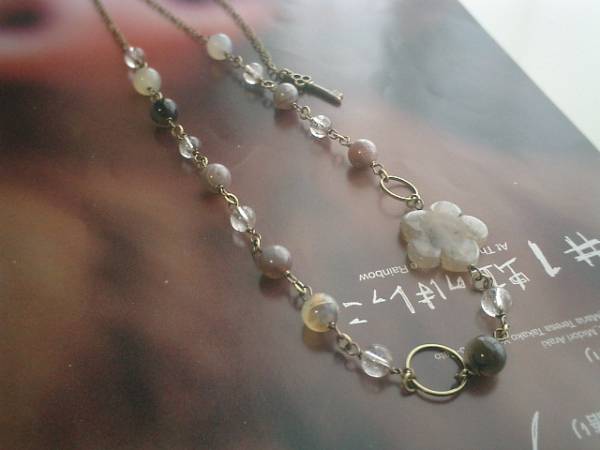 私的・乙女心・・シリーズです♪秋のクローゼット・・シックなモノトーンのネックレスです♪ニュアンスのある石を集めて大人のロマンチックしています♪モスアゲートのお花は20ミリ位、スモーキークォーツは6ミリの丸玉、ボツワナアゲートは8ミリの丸玉です♪長さは全長60センチ位で調節自由です♪チョーカー風にされても素敵です♪お揃いのブレスレットやイヤリングも出品しています♪♪シンプルでいつまでも着けられるデザインを考えて作りました!ハンドメイドをご理解頂いてノークレーム、ノーリターンでお願いします