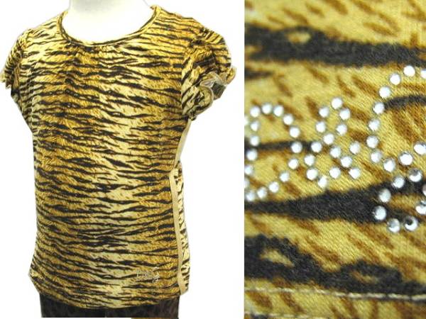 商品説明 | 08SS★タイガートラ柄の半袖Tシャツ。袖がフリルパフ袖になっていて、サイドにパイピング、裾にクリアーラインストーンで【D&G】ロゴがCUTEなドルチェ得意のアニマルデザイン。 |