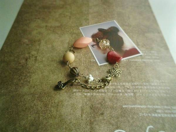 アート・ロマン主義・・シリーズです♪シックで可愛い色を集めたブレスレットです♪8ミリから26ミリ位までの大きさ違い、お色違い、デザイン違いのウッドや樹脂ビーズやアンティークビーズやデザインチャームを合わせてシックで可愛い表情です♪長さは全長23センチ位で調節自由です♪お揃いのネックレスも出品しています♪♪シンプルで飽きのこないいつまでも着けられるデザインを考えて作りました!ハンドメイドをご理解頂いてノークレーム、ノーリターンでお願いします