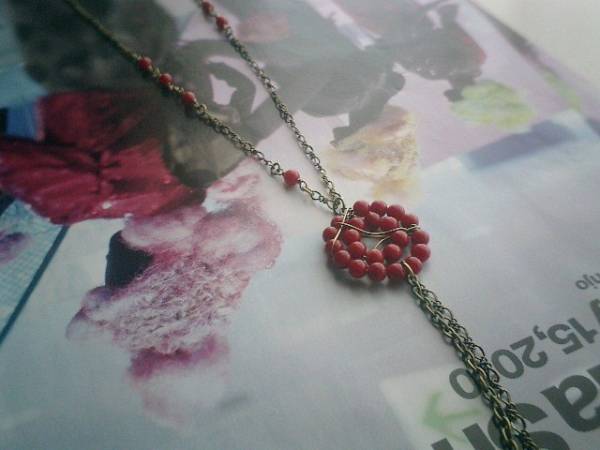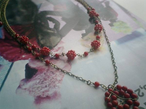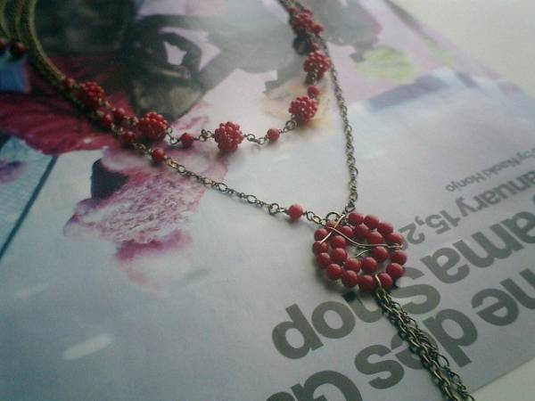 センチメンタル気分・・シリーズです♪オリエンタルな赤の珊瑚のネックレス2本セットです♪深い赤が可憐な表情です♪♪珊瑚は4ミリの丸玉と9ミリ位の編み珊瑚玉です♪珊瑚玉のネックレスは全長63センチ位で調節自由です♪チョーカー風にされても可愛いです♪♪長い方のネックレスのトップは4ミリの丸玉の珊瑚をワイヤーでデザインしました♪華奢なチェーンを合わせてキュートモダンな表情です♪長さは全長84センチ位で調節自由です♪トップはチェーンを入れて11センチ位です♪それぞれ単品やお揃いのブレスレットも出品しています♪シンプルで飽きのこないいつまでも着けられるデザインを考えて作りました!ハンドメイドをご理解頂いてノークレーム、ノーリターンでお願いします