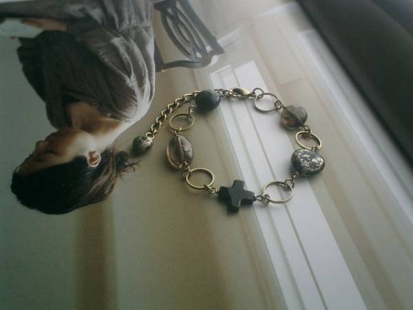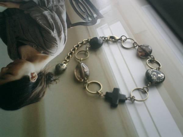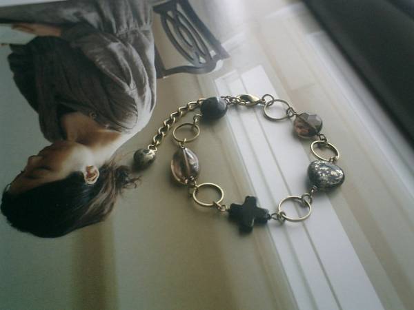 センチメンタル気分・・シリーズです♪モノトーン仕様・・オニキスとスモーキークォーツのシックなブレスレットです♪10ミリのコイン、12ミリのクロスなどデザイン違いのオニキスに10ミリのコインカットやオーバルツイストなどデザイン違いのスモーキークォーツや10ミリ、8ミリのハートのパイライトを合わせてキュートモダンな表情です♪モノトーンでまとめて大人仕様のデザインです♪長さは全長23センチ位で調節自由です♪♪お揃いのネックレスも出品しています♪♪シンプルで飽きのこないいつまでも着けられるデザインを考えて作りました!ハンドメイドをご理解頂いてノークレーム、ノーリターンでお願いします
