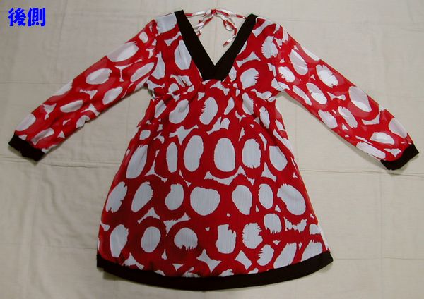 ■美品:赤白柄薄手チュニック 赤地に白い水玉(?)M位    DmK91