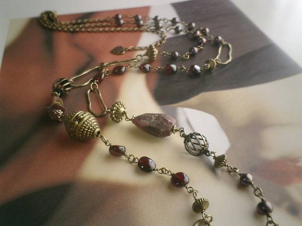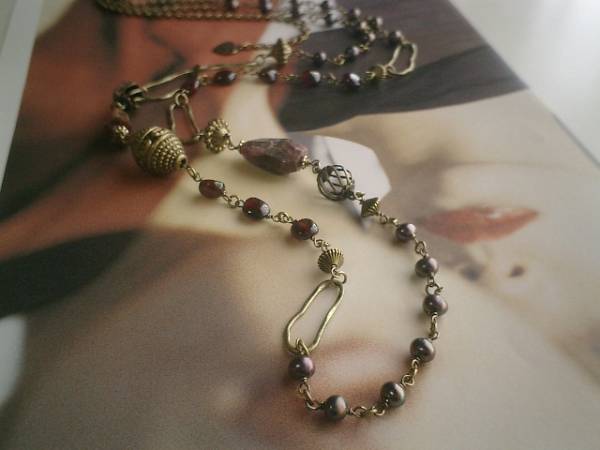 私的コレクションシリーズです♪巴里に旅して・・アンニュイなパープルピンクでまとめたシックなネックレスです♪深い赤のガーネットとグレーパープルの淡水パールは16ミリ位、20ミリ位のラフカットのピンクトルマリンを合わせました♪ピンクやパープルやグレーのシックな色がアートモダンな表情です♪デザイン違いのメタルチャームを合わせて大人のロマンチックしています♪長さは全長115センチ位で調節自由です♪2連にされても素敵です♪♪お揃いのネックレスやブレスレットも出品しています♪♪シンプルで飽きのこないいつまでも着けられるデザインを考えて作りました!ハンドメイドをご理解頂いてノークレーム、ノーリターンでお願いします