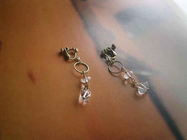 愛しいお気に入り・・シリーズです♪白の気品・・水晶のイヤリングです♪繊細な8ミリ位のボタンカット、10ミリ位のスターカットの水晶にデザインリングを合わせて大人のロマンチックしています♪♪長さは全長5・6センチ位です♪ピアスにも変更出来ます♪♪お揃いのネックレスやブレスレットやイヤリングも出品しています♪シンプルで飽きのこないいつまでも着けられるデザインを考えて作りました!ハンドメイドをご理解頂いてノークレーム、ノーリターンでお願いします