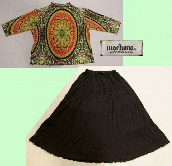 ■新品+美品:伸縮素材 七分袖カットソー&スカート M位 DmK41