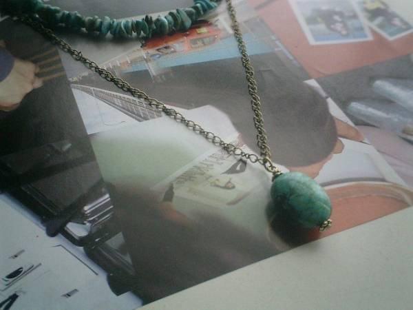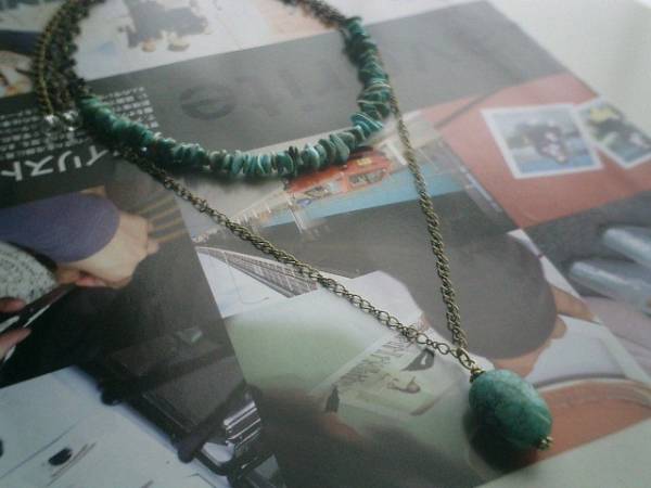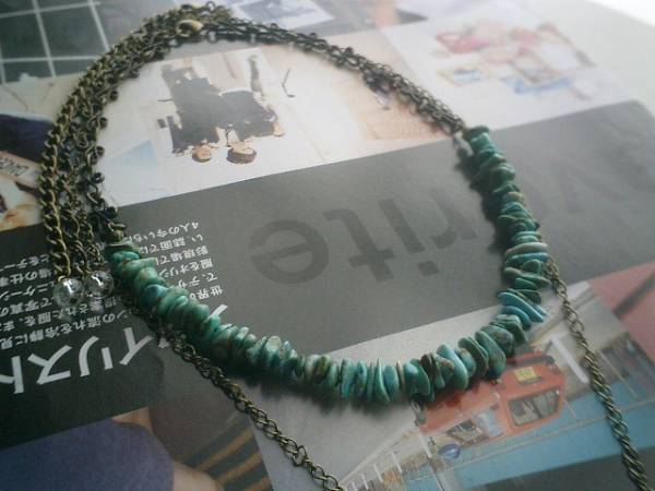 ガラスの靴の女の子・・シリーズです♪初夏の風・ターコイズのネックレス2本セットです♪ナチュラルな色合いのターコイズのさざれはお花のチェーンと合わせて可憐な表情です♪長さは全長55センチで調節自由です♪長い方のネックレスは繊細なチェーンに2×1・4センチ位のタンブルのターコイズを合わせました♪長さは全長82センチ位で調節自由です♪単品でも出品しています♪♪シンプルで飽きのこないいつまでも着けられるデザインを考えて作りました♪ハンドメイドをご理解頂いてノークレーム、ノーリターンでお願いします