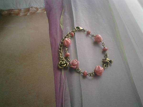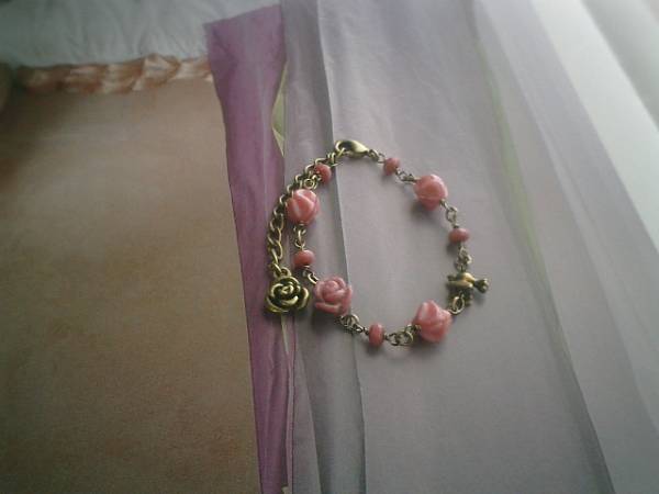 秋色・デッサン・・シリーズです♪時々・少女気分で・・キュートなロードナイトのブレスレットです♪薔薇や小鳥さんを合わせてアンティーク・モダンな表情です♪モーヴピンクの9ミリのデザインチェコにボタンカットのロードナイトや11ミリの薔薇のロードナイトや小鳥さんのチャームを合わて大人のロマンチックしています♪長さは全長23センチ位で調節自由です♪♪お揃いのネックレスやピアスも出品しています♪シンプルで合わせやすいデザインを考えて作りました♪ハンドメイドをご理解いただいてノーリターン、ノークレームでお願いします♪