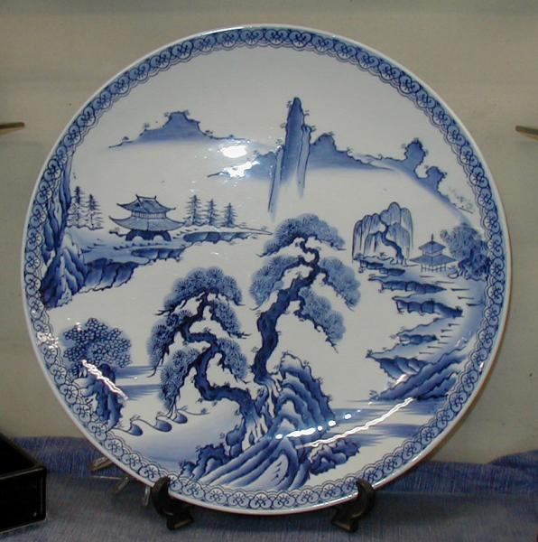 お買得!!【即決】未使用 有田焼 山水 大皿 尺五寸 染付け
