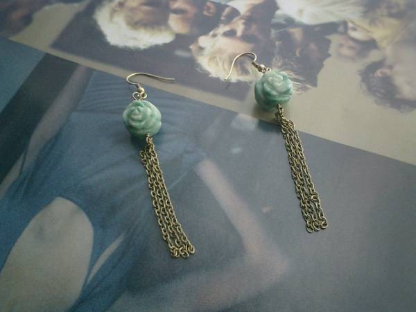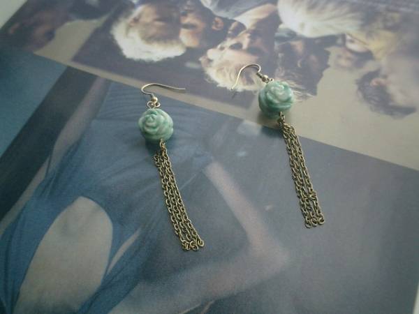 カワイイと可愛いの間に・・シリーズです♪儚い薔薇・繊細な翡翠の薔薇のピアスです♪13ミリの翡翠の両面薔薇にチェーンを合わせてオリエンタルモダンな表情です♪長さは全長9.5センチ位です♪イヤリングにも変更出来ます♪お揃いのネックレスやブレスレットも出品しています♪♪シンプルで飽きのこないいつまでも着けられるデザインを考えて作りました!ハンドメイドをご理解頂いてノークレーム、ノーリターンでお願いします