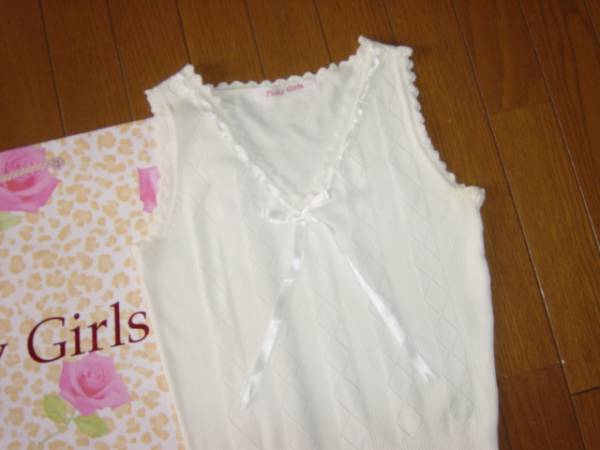 気持ちの良いお取引を心がけておりますので どうぞ宜しくお願い致します☆( ^▽^)/.。.:*・° ご覧いただきありがとうございます:。☆(-∀・*)(*・∀-)☆+:。 ★Pinky Girls サテンリボン ニット風ノースリーブカットソー ホワイト★ ピンキーガールズのノースリーブカットソー、お色は白になります 胸元を綺麗に見せてくれるVネックラインにホワイトサテンリボンのデザイン★生地はアーガイルチェックがうっすら入っています ウエストラインもシェイプ♪ストレッチも効いています。コットン素材で柔らか★1枚でお洒落&可愛いカットソーです(^▽^) 状態☆used 2回使用 クリーニング済み☆ 大きな汚れはありませんが 点しみ、使用感あります・ご了承の上ご入札くださいませ サイズ表記 M 実寸平置きで 着丈(肩トップより) 53センチ 肩幅 29センチ 脇下37・5センチ ウエスト(切り返し部分) 29センチ 裾幅 28センチ リボン幅 1センチ (素人採寸ご了承下さいませ) 素材 コットン 80% ナイロン 18% ポリウレタン 2% 可能な限り商品をチェック、傷等御座いましたらもちろん記載いたしますが個人出品、保管になります事をご理解の上ご入札下さいますようお願 い申し上げます 他に多数新品ポーチ、バッグ、洋服出品しておりますので宜しかったらご覧下さいま せ★ 自宅保管になりますので神経質な方はご遠慮下さい。 質問等 御座いましたらお気軽にしてくださいね(* '-^)⌒☆ 宜しくお願いいたします(*^▽^*)/ |