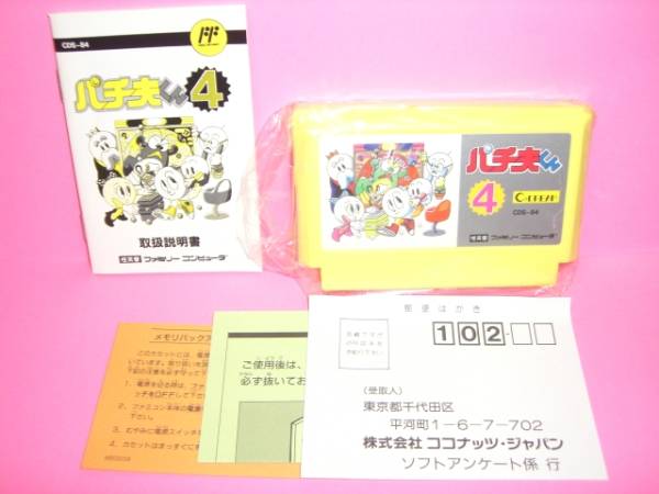 ☆任天堂ファミコンソフト パチ夫くん4 ☆新品☆ です。 商品の状態は1枚目2枚目3枚目の画像参照の上、ご入札下さい。 (画像に写っている物が全てです) ☆【即決】価格ですので、オークション残日数、時間に関係なく入札確認次第終了いたしますので、よくお考え頂き御入札下さい。 ★注意事項★ ・古い商品ですので、外箱に傷み・汚れ・色あせ・テープの剥し痕破れ等、あります。 又バッテリーバックアップの保証はできかねますので、ご了解の上御入札下さい。 (外箱は完璧品では有りません。) ・お支払い方法は、【Yahoo!かんたん決済】