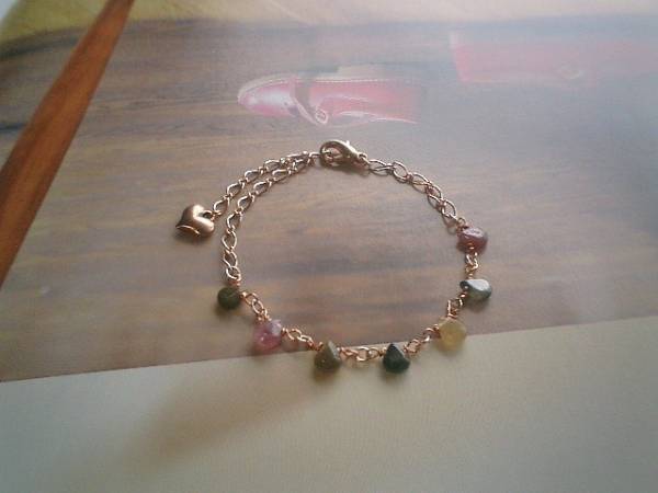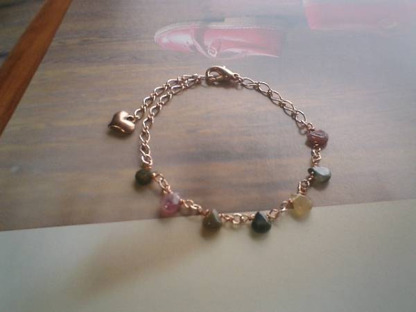 イノセント・ガール・・シリーズです♪日曜日の午後・・キュートなトルマリンのブレスレットです♪トルマリンは5×7ミリ位のフラットドロップです♪シックな色を集めてピンクゴールドのチェーンで繋いでいます♪大人可愛い表情です♪長さは全長23センチ位で調節自由です♪チョーカー風にされても素敵です♪お揃いのネックレスも出品しています♪♪お揃いのシリーズも出品しています♪シンプルで長く着けていただけるデザインを考えて作りました♪ハンドメイドをご理解頂いてノークレーム、ノーリターンでお願いします