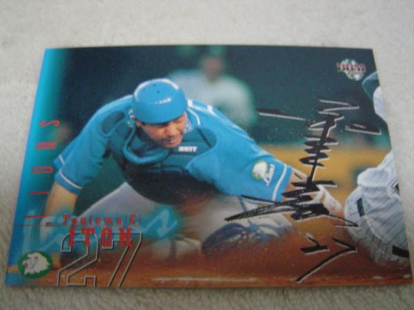 2001BBMプリントサイン黒#185、西武の伊東勤のカードです。コレクション整理のため出品いたします。発送は特定記録郵便を考えておりますが、普通郵便などご希望があれば対応いたします。