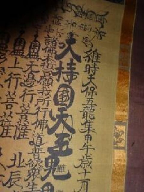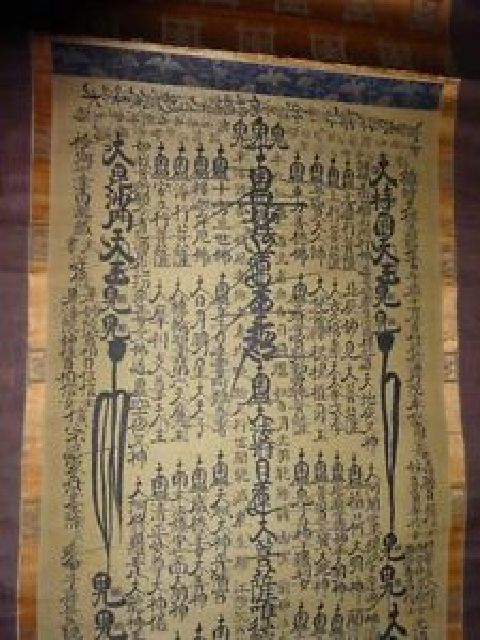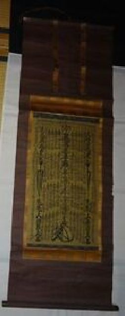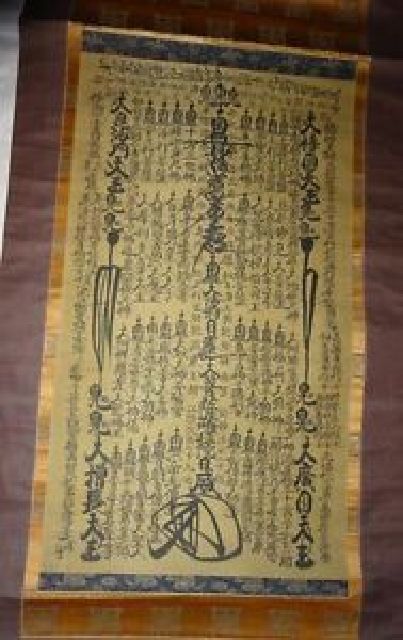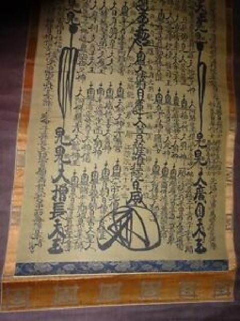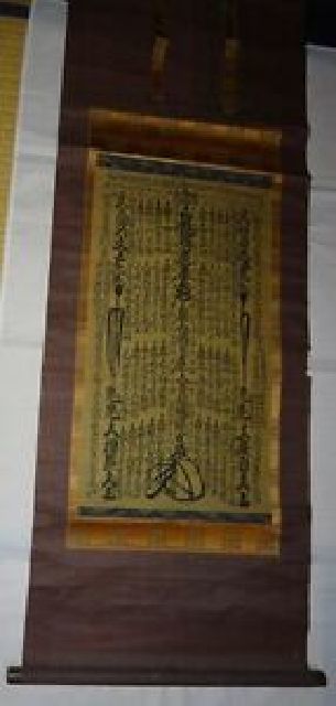 『稀少 1834年 天保5年 江戸時代 日蓮宗 寺 日威 髭曼荼羅 南無妙法蓮華経 御本尊 絹本 肉筆 掛軸 仏教 寺院 高僧 和尚 僧侶 書 書道 古美術』です。