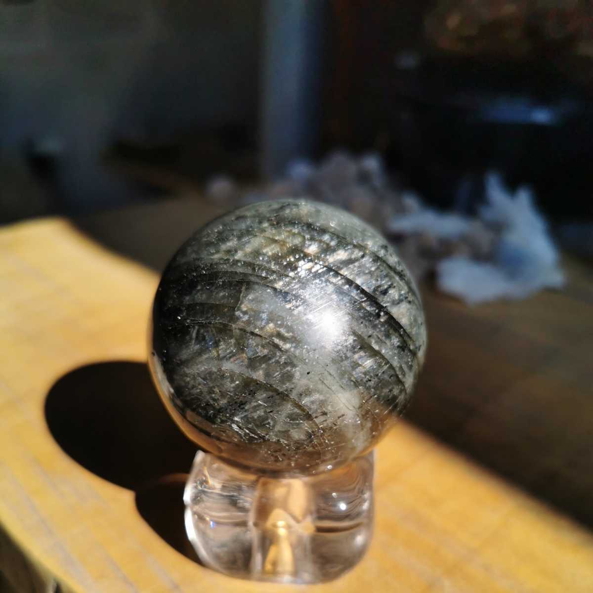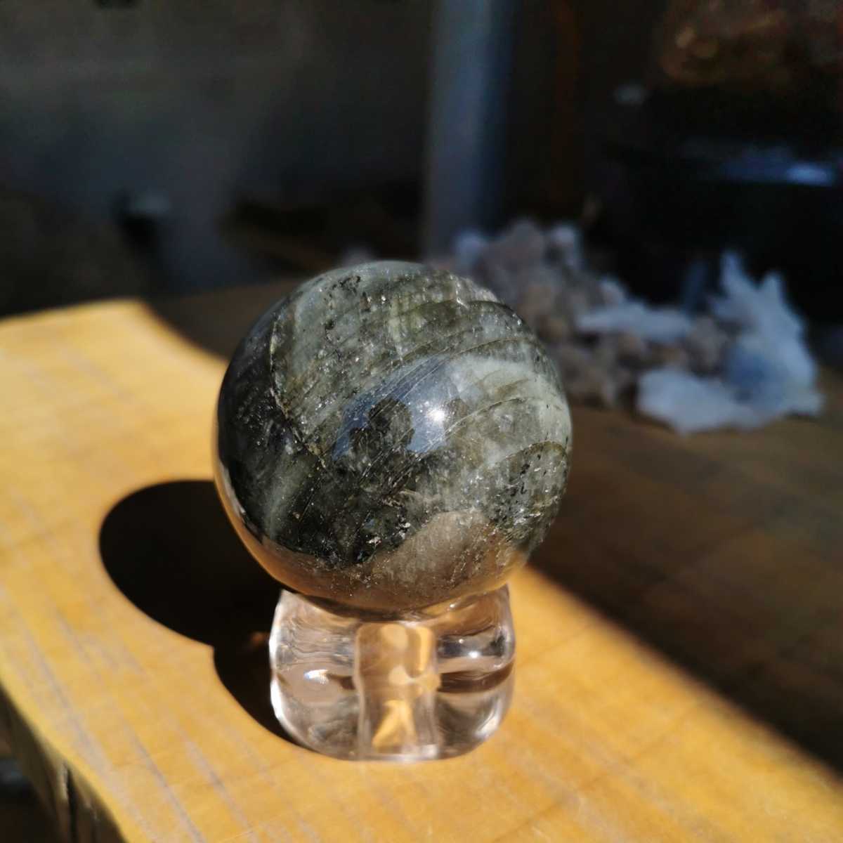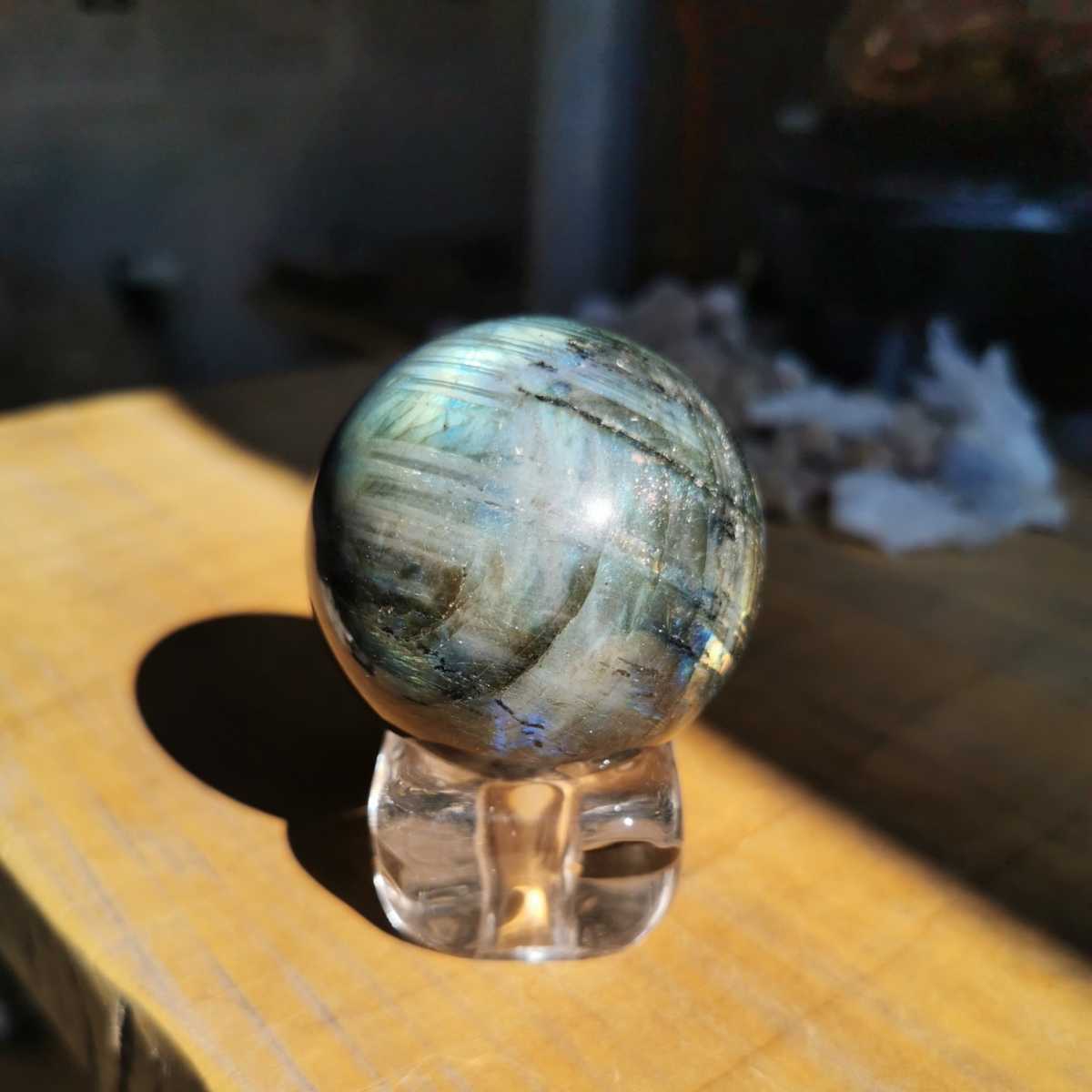 ラブラドライト丸玉!ダイヤモンド磨きでピカピカです!綺麗にシラー見えて素晴らしいです!送料無料宜しくお願いします!