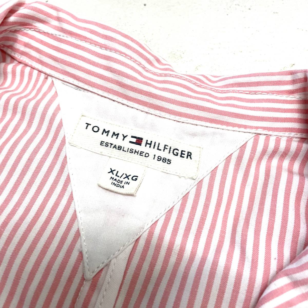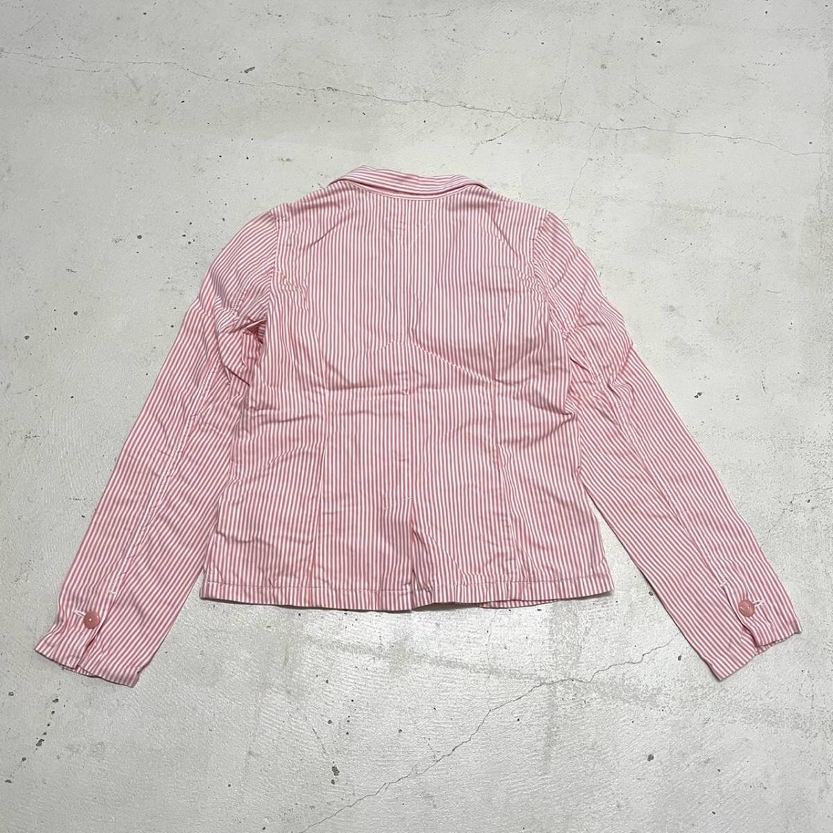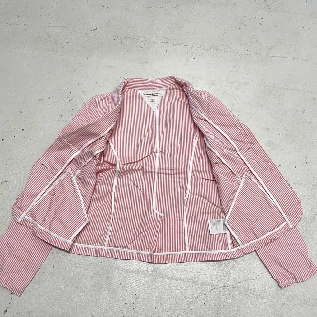 USA古着です。 トミーヒルフィガーのテーラードジャケットです。 シャツ生地、肩パットなしの軽い着心地。 ピンク×白のキャンディーストライプ柄です。 シェイプの効いた細身のシルエット、ショート丈になります。 左裾に人気のクレスト刺繍。 裏地は付いていません。 海外キッズサイズですので着用感XSサイズ程度です。 洗濯済みになります。お探しの方におすすめです。 | |||