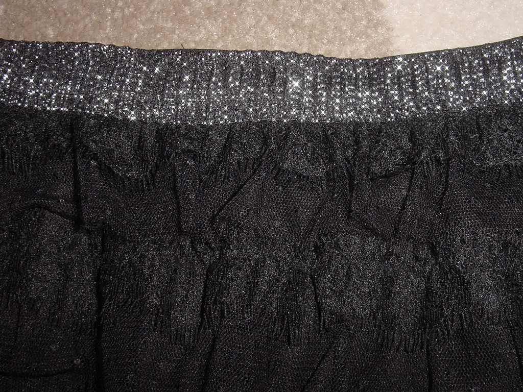 ウエストはラメ入りで、トップスをインすれば ベルトのようにウエストマーク効果があります。