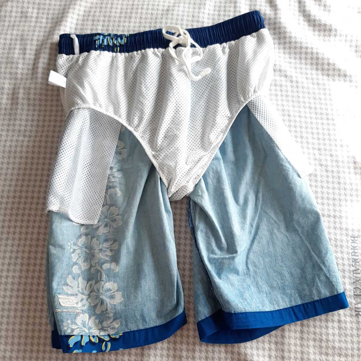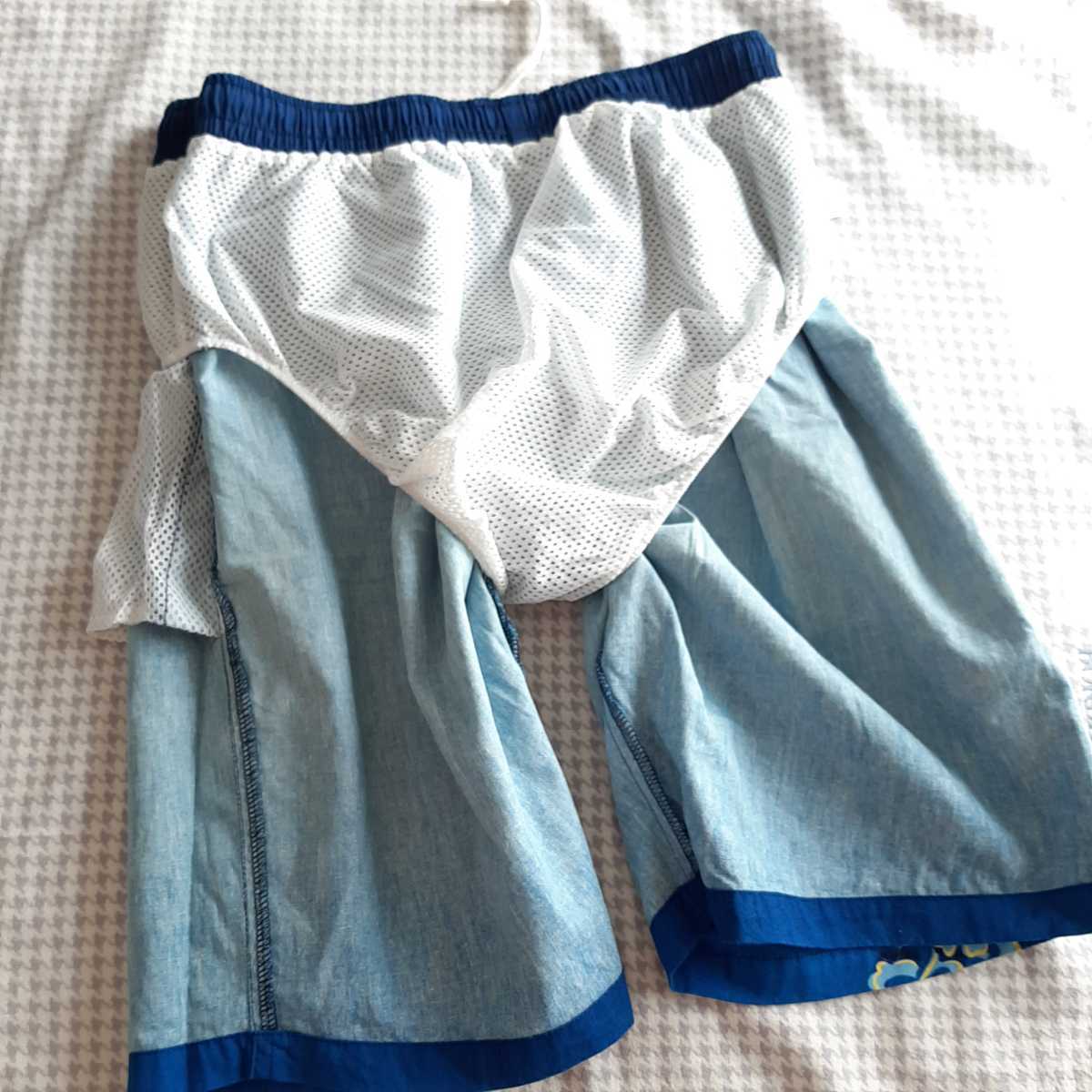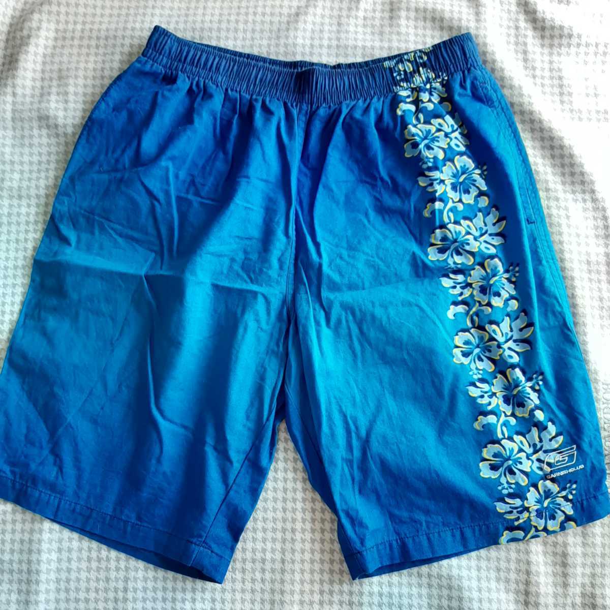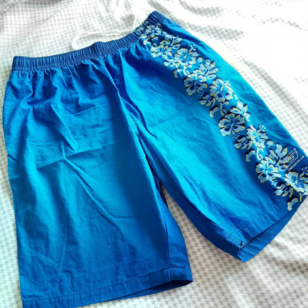 メンズ 水着 GARNISHCLUB Mサイズ 丈49.5 青系色グラデーション ハイビスカス コットン 210709