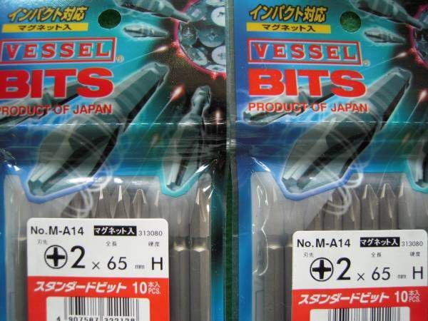 〔在庫あり〕ベッセル マグネット入りビット 65ミリ 30本『送料無料・税込』 M-A14 (+)・2x65H 10本入りx3-30本