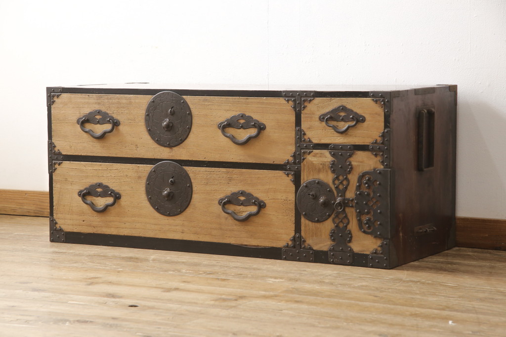 和製アンティーク 前面桐材 桜丸金具 品のある佇まいが魅力的な米沢箪笥・上段(和タンス、時代箪笥、収納箪笥、整理タンス、重ね箪笥)(R-058082)です。