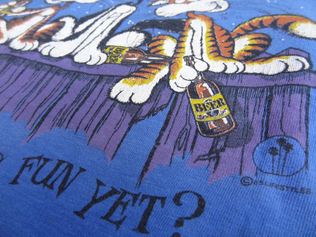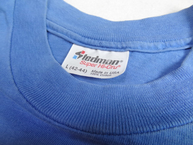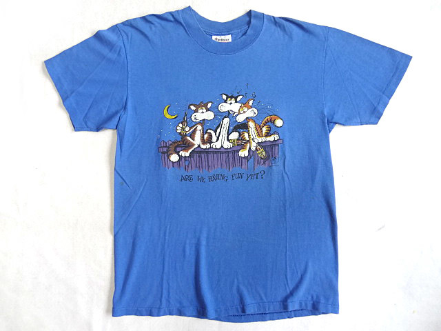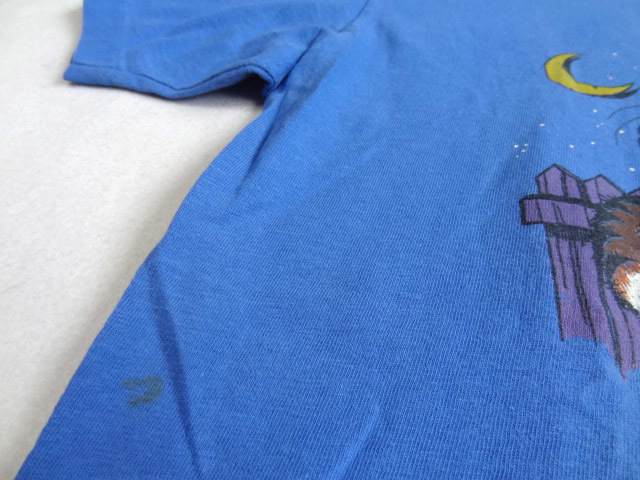 ビンテージ STEDMAN USA 80S 猫 イラスト キャラクター 両面 プリント Tシャツ 青 ブルー サイズ L 90S 雰囲気 アジ ダメージ レア cネック