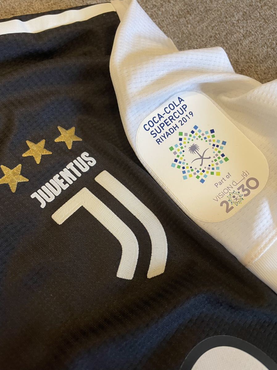 各数字にユヴェントスという文字を強調する伝統的なアラビア語カリグラフィーがデザインされているほか、選手名もアラビア語で書かれています。