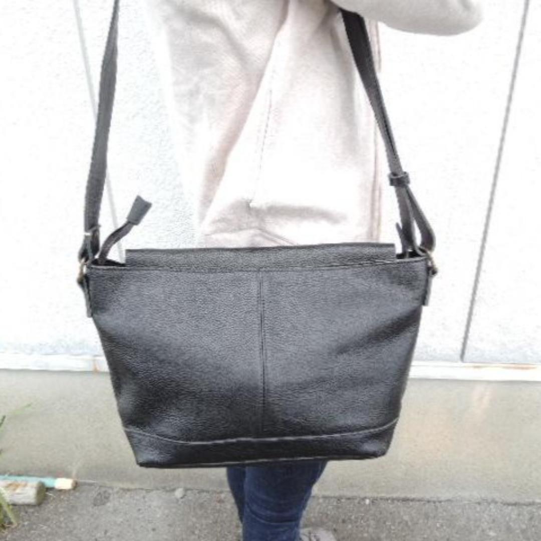 かぶせですが、上がファスナー開閉で、 後ろにも大きなポケットがあって、ショルダーも幅広です。 革もすごく柔らかいです。