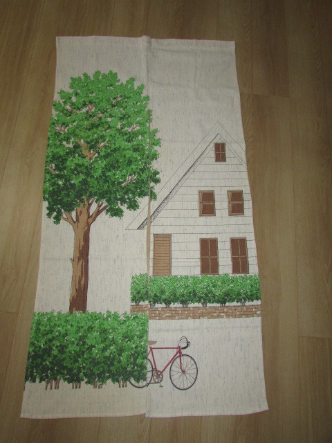 (着物屋・蔵出し)(古布・コテ-ジに自転車模様暖簾)