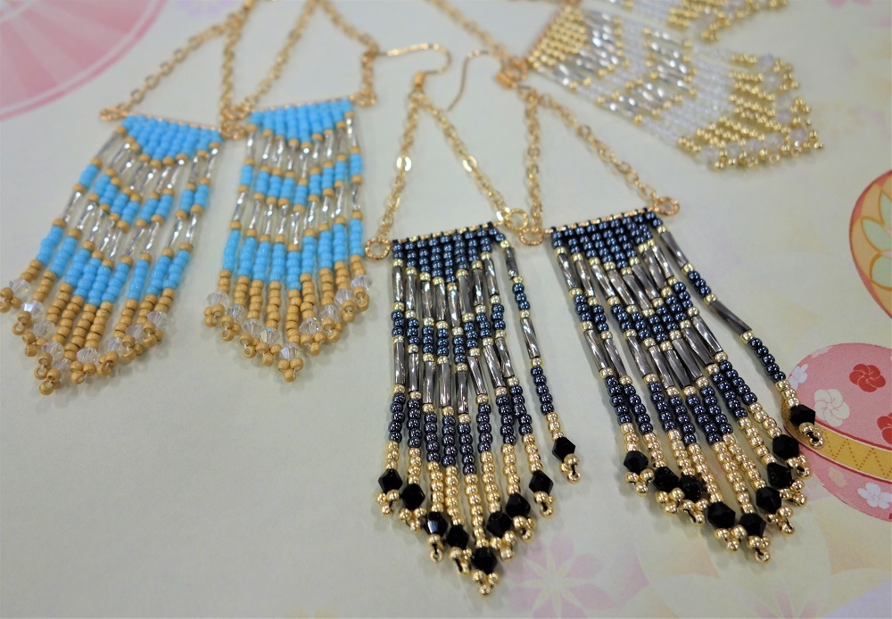 ◎主な使用材料:TOHOビーズ、、ガラスビーズ、合金製金具、MIYUKIビーズ用糸などを使用しています。