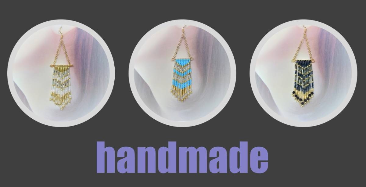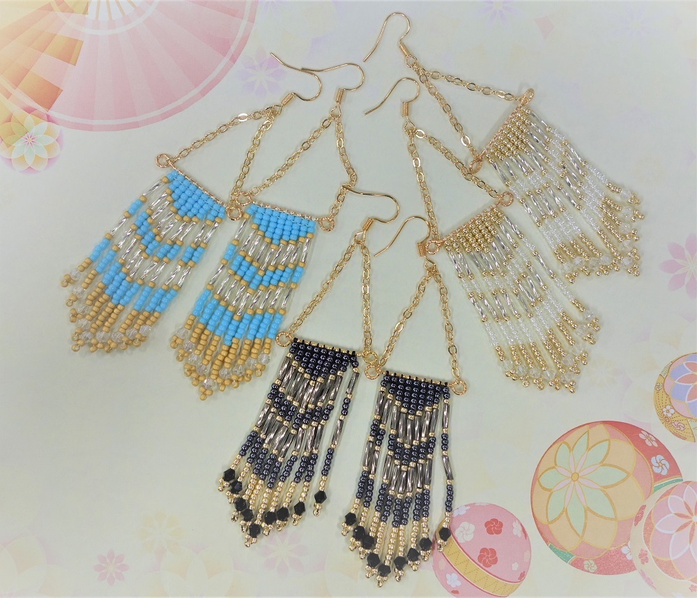【ビーズタッセルピアス/3セット一括販売】送料無料/ハンドメイドアクセサリー