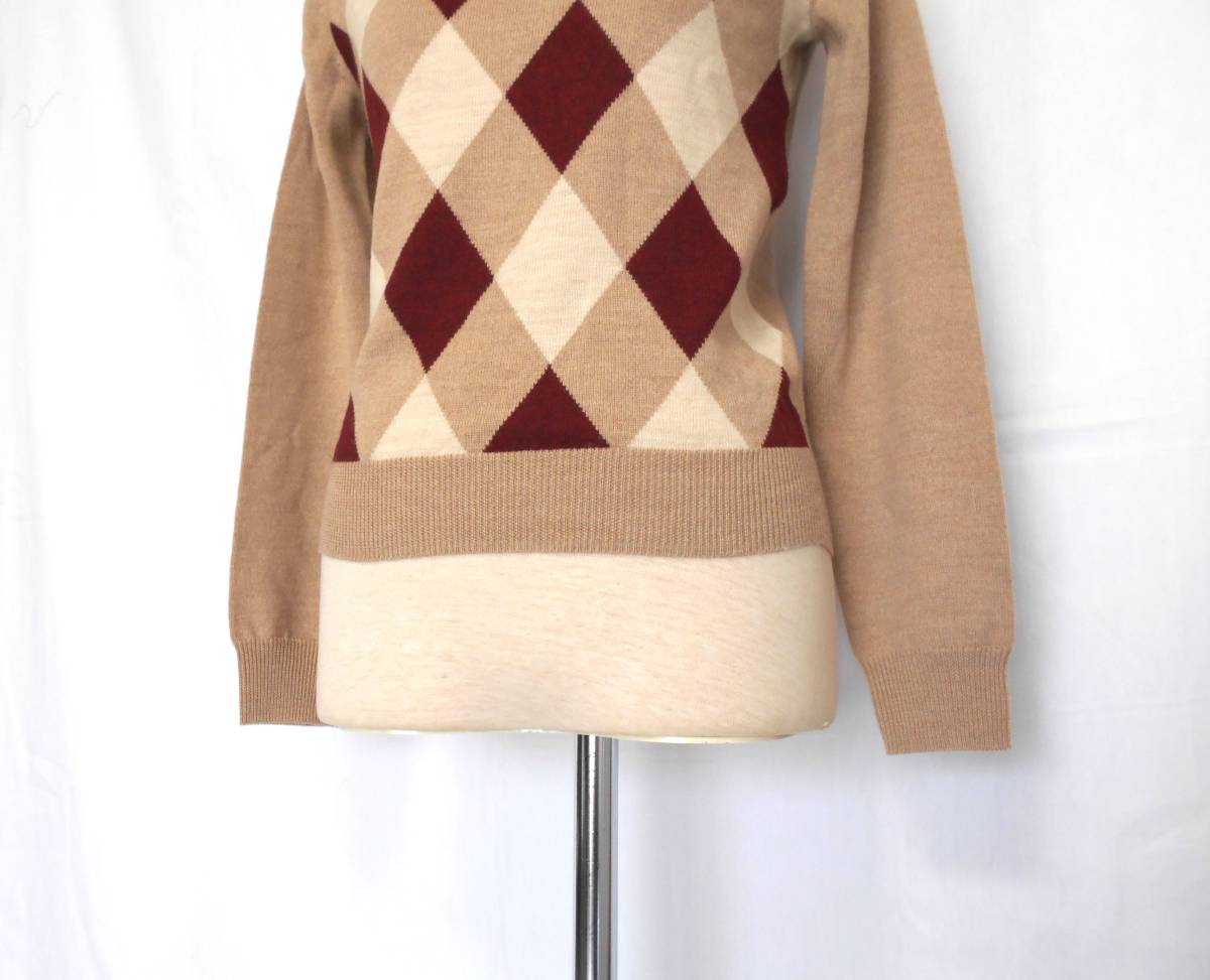 | 暖かみのあるベージュのアーガイル柄が上品できちんと感のあるおしゃれな1枚です。 | ||