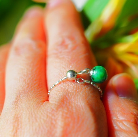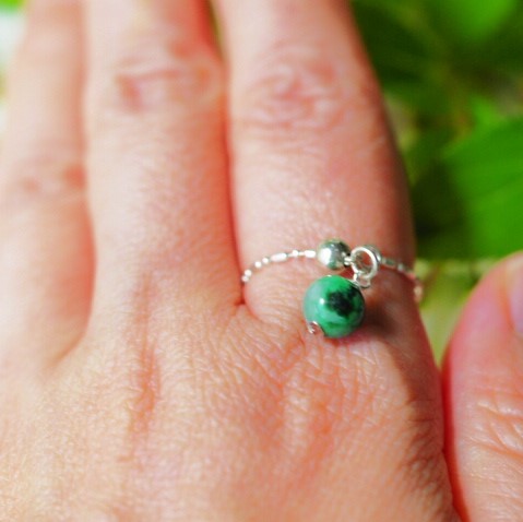 翡翠 チェーンリング SV 小粒 天然無処理ヒスイ