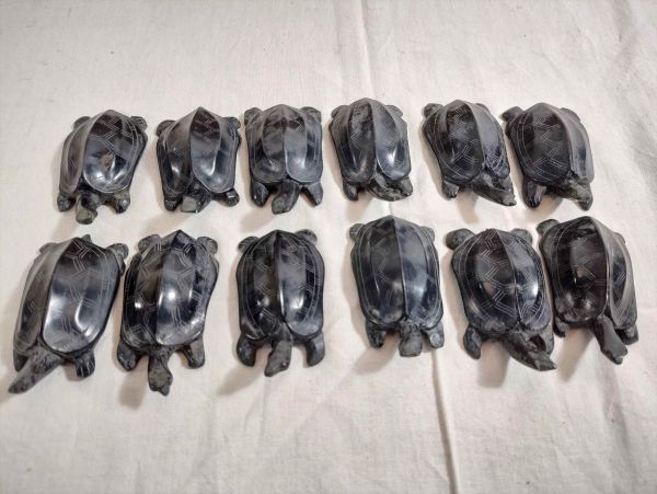 ■■硯石 文鎮 亀 12点 セット 書鎮 書類押え ペーパーウエイト 石製 1ダース 置物■■