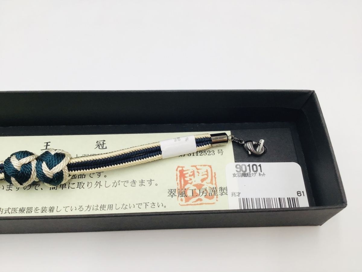 コメント | 新品の正絹女羽織紐です。 伝統と新しい感性が融合された斬新なデザインの逸品です。 中央にマグネットを使用していますので、 簡単に外せて脱いだり来たりがとても楽ちんです。 カニカン式羽織紐で取り外しが簡単です。 とてもお洒落な羽織紐です。 羽織を素敵に演出するワンランク上のアイテムとしておすすめです。 |