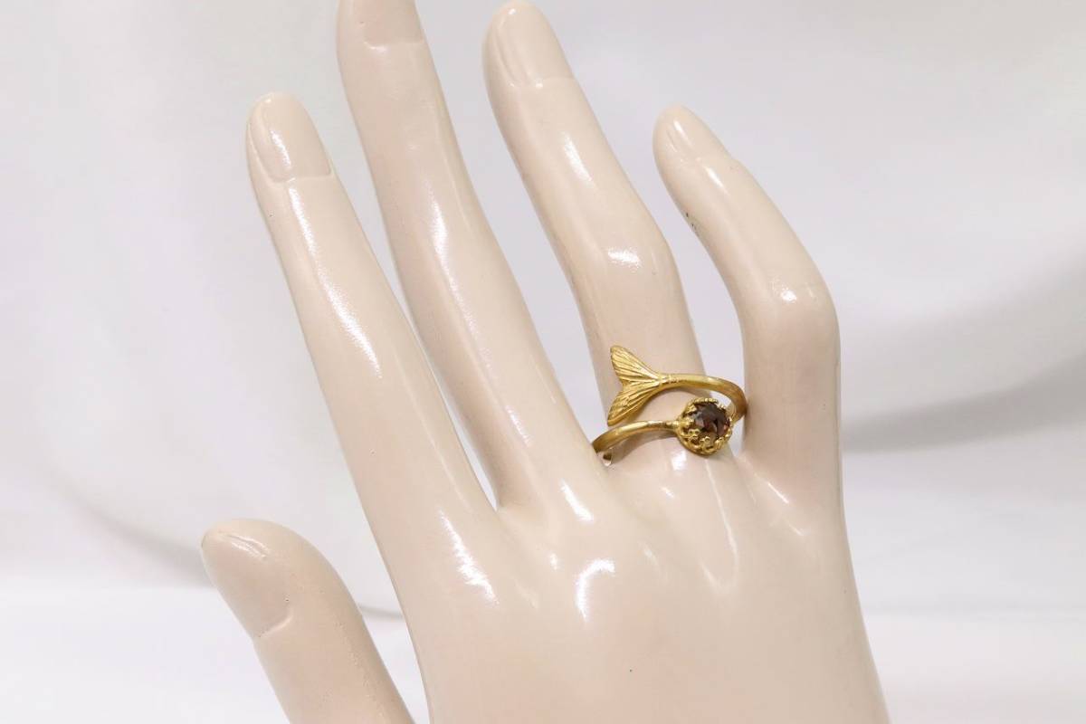 【★HR457①】天然石 スモーキークォーツ 尾びれ モチーフ 真鍮 リング 指輪 フリーサイズ パワーストーン 精神安定 ポジティブ【送料全国一律198円】