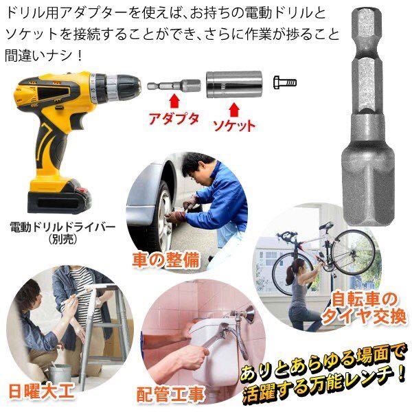 サイズ(約):レンチ長さ18cm、ソケットΦ2.3×長さ5.5cm、ドリル用アダプター長さ5cm