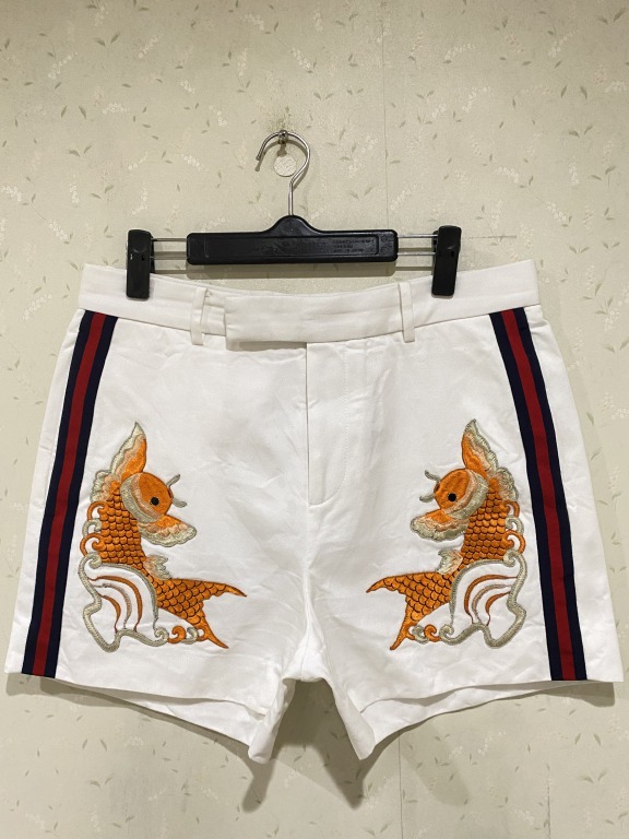 GUCCI グッチ 478174 Z330E 刺繍 バミューダ ハーフ ショート レーヨン コットン パンツ ホワイト イタリア製 46      BJBA.F
