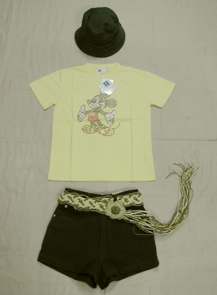 ■タグ付新品:Disney立体ミッキーTシャツ&緑の短パン+2 M    DmC02