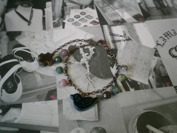 可愛く楽しいインディアンアゲートと輝く星のようなブルーサンドストーンの小鳥さんのブレスレットを作りました♪シックで楽しいデザインです♪インディアンアゲートは6ミリのカット丸玉と12ミリ角のクロスです♪シックなお色なので大人っぽい可愛さです♪小鳥さんは20×13ミリ位です♪♪長さは全長21センチ位で調節自由です♪お揃いのネックレスも出品しています。ハンドメイドをご理解頂いてノークレーム、ノーリターンでお願いします