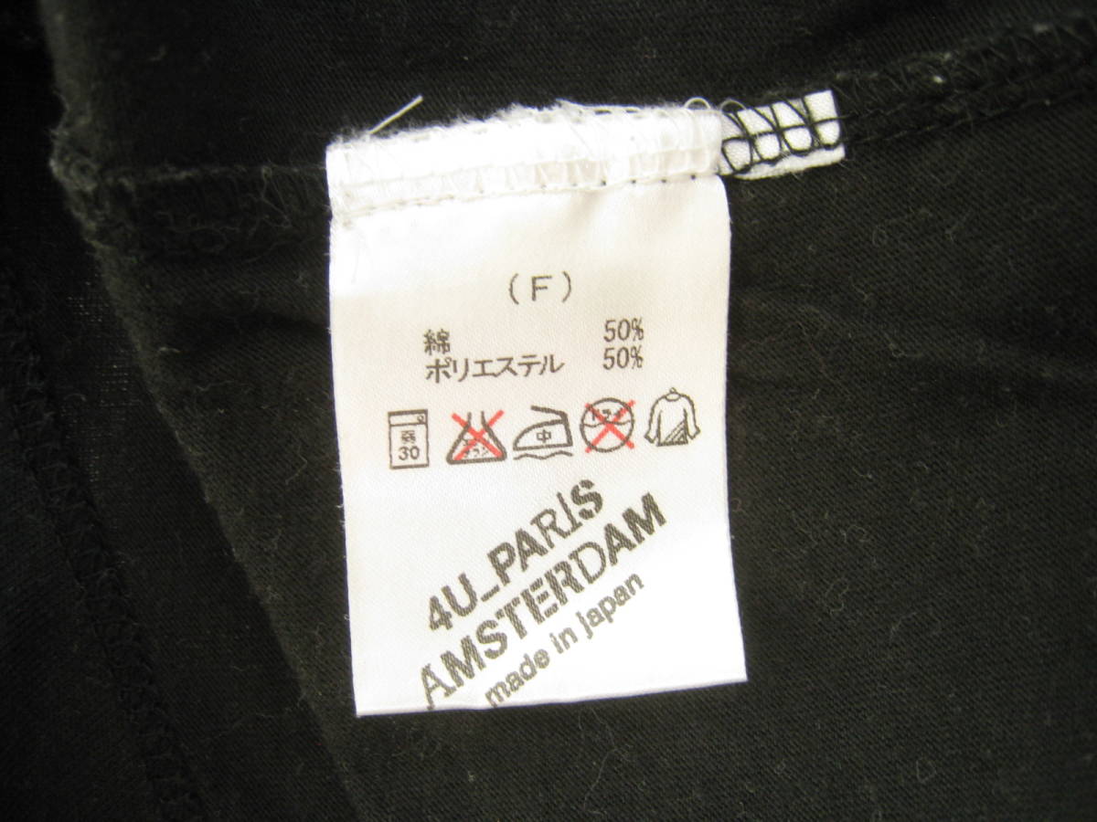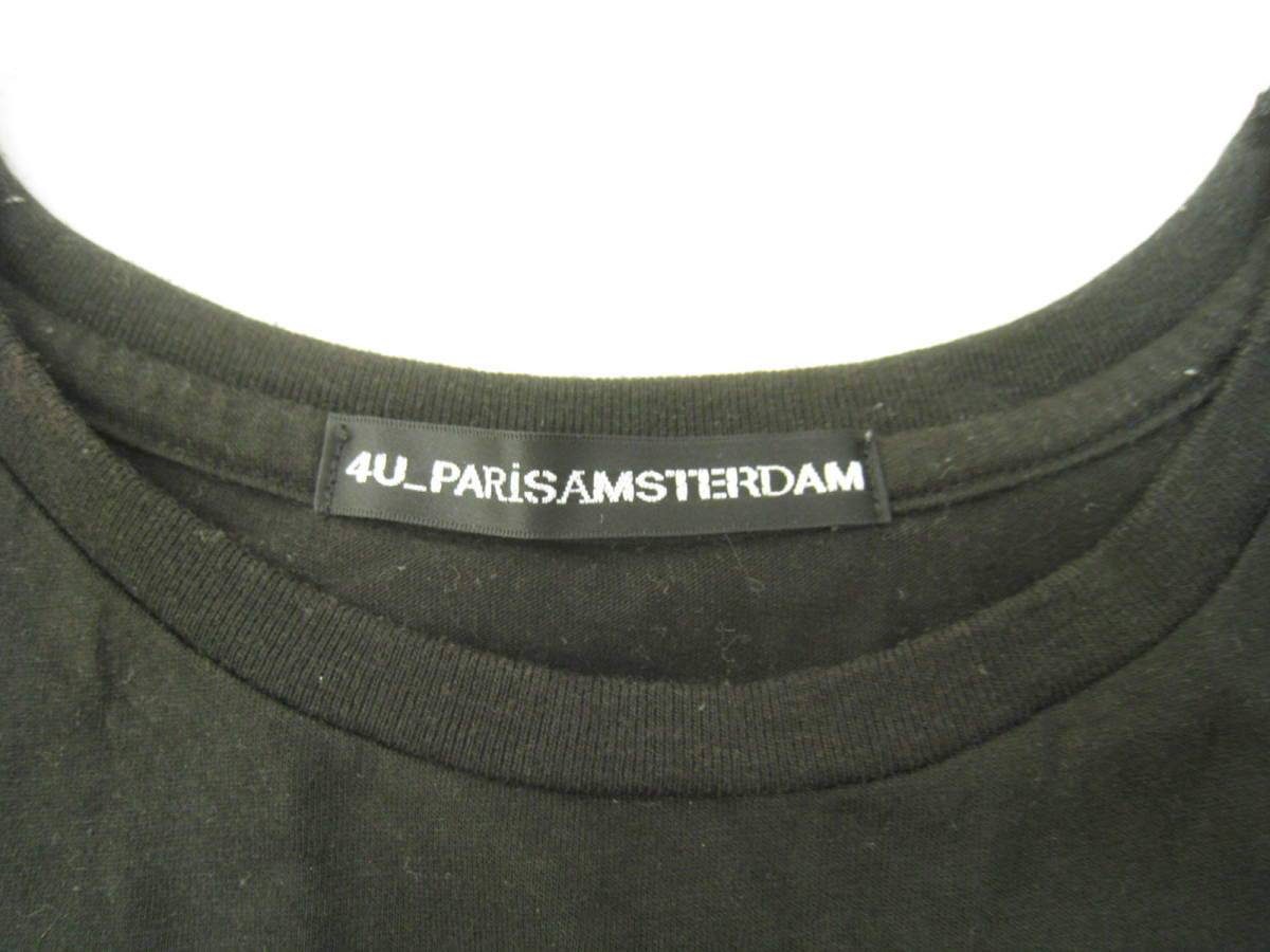 4U-PARIS AMSTERDAM ロング 半袖 Tシャツ バックプリント ブラック 黒 サイズF