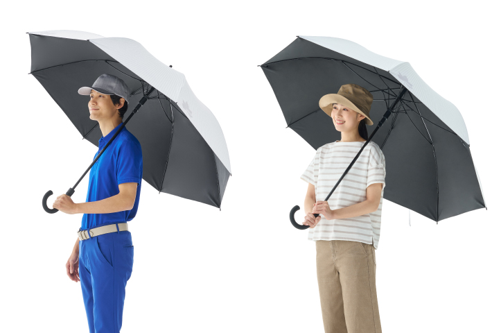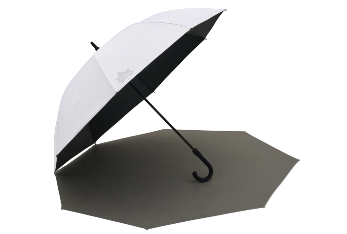 大型スポーツ日傘に、夏の強烈な日射しと熱を遮るソーラーブロック加工を施した生地を採用。