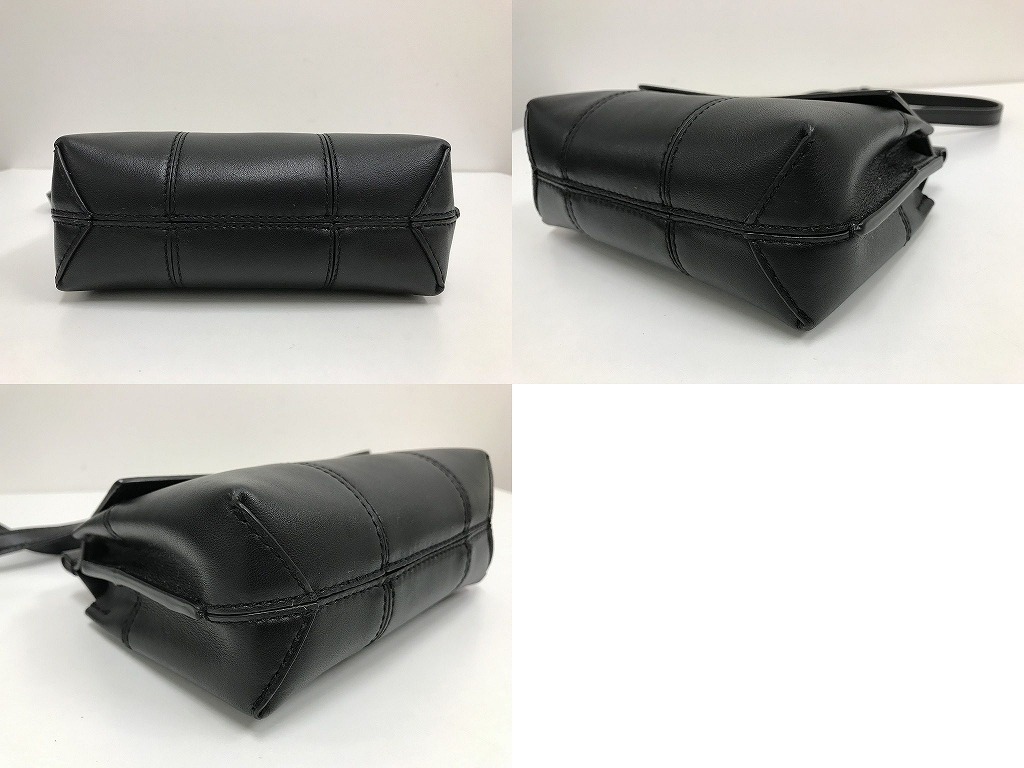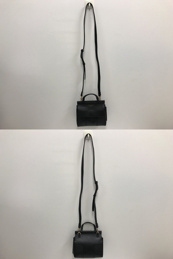備考ハンドル高さ約5.5cm ショルダー紐高さ(最長)約61.0cm・5段階調節・約3.0cm間隔  紐幅約1.5cm   ショルダー紐長さ調節可・取り外し可  斜め掛け可   仕様/ 開閉:マグネットボタン   内側:カードポケット2 仕切りあり   外側:ポケットなし    カラー:黒ブラック